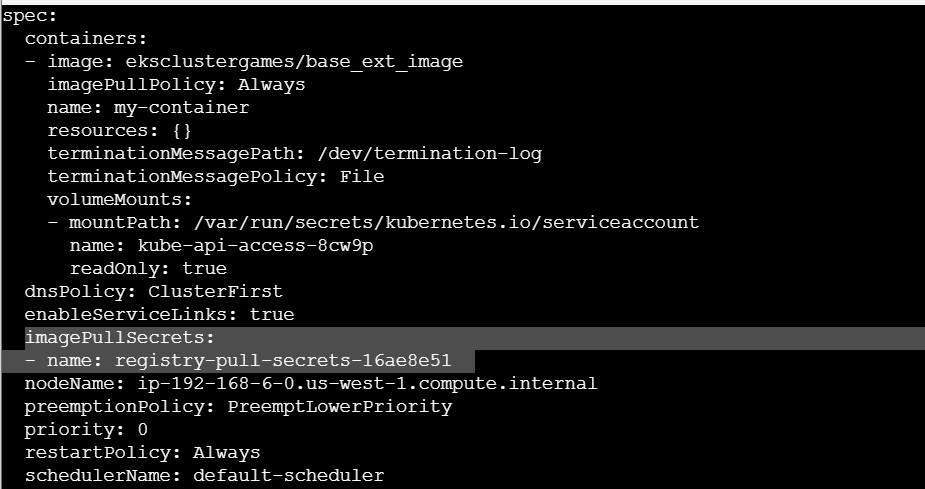 提示是在AWS 的pod环境中,且要获得image去寻找secret。