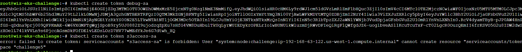 提示当前已经成功通过有限权限的服务账户获取到了节点服务账户,下一步是从EKS到AWS账户的获取,拿到s3access-sa账户的权限。