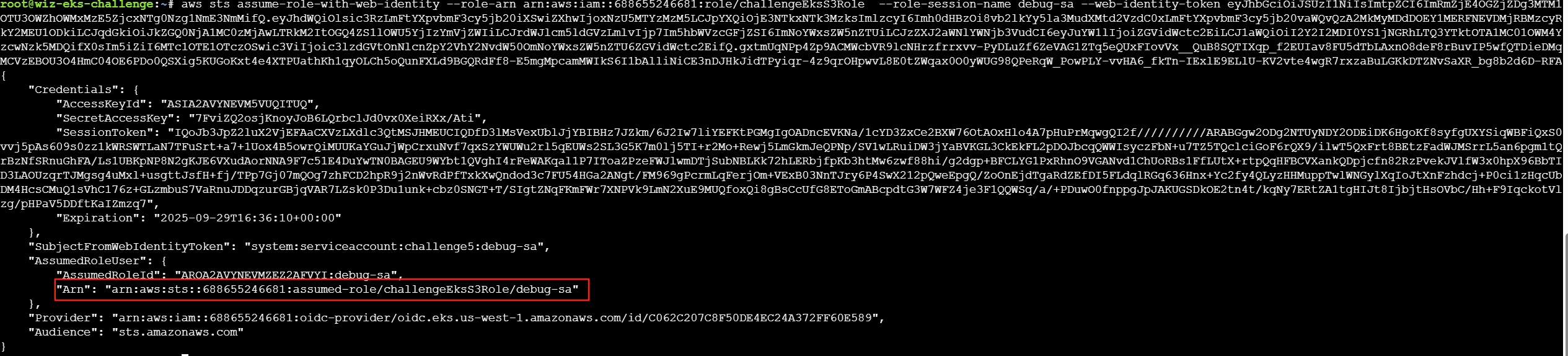 可以创建debug-sa的token,但无法创建s3access-sa的token,他们的OIDC均为688655246681,解码也可以看到debug的aud为:oidc.eks.us-west-1.amazonaws.com/id/C062C207C8F50DE4EC24A372FF60E589