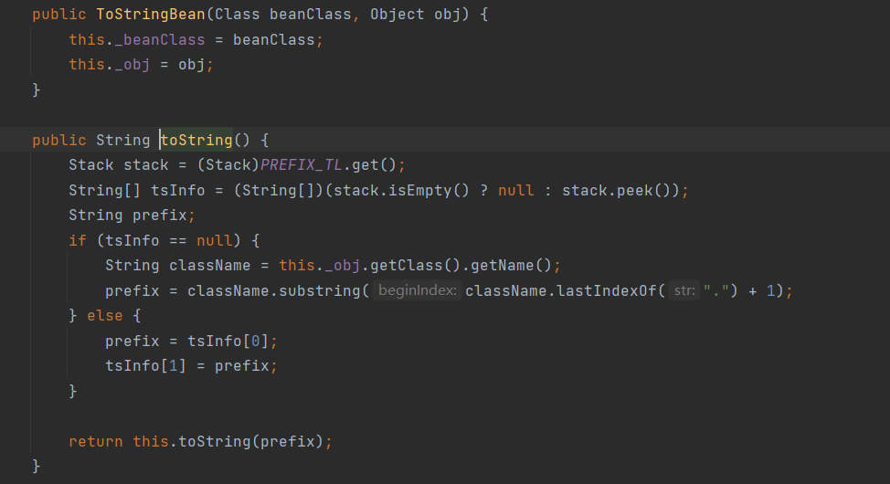 之后再通过反射进行赋值,因此这里new ToStringBean