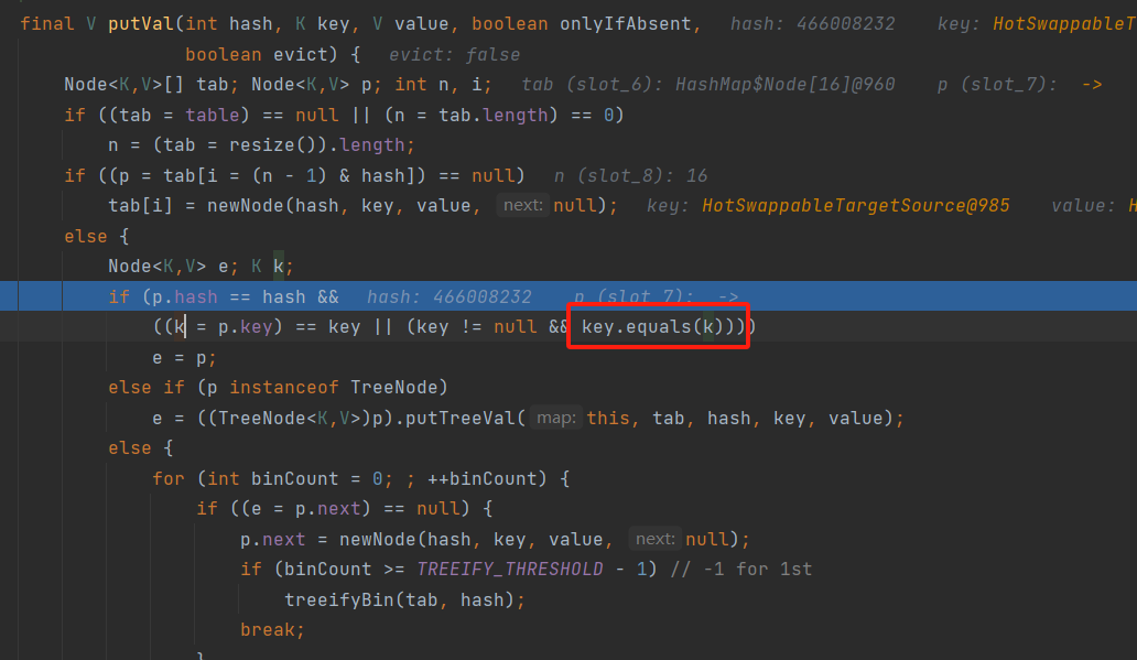 ,这里可以利用哈希碰撞绕过哈希判断,之后就会调用e.key.equals(key)