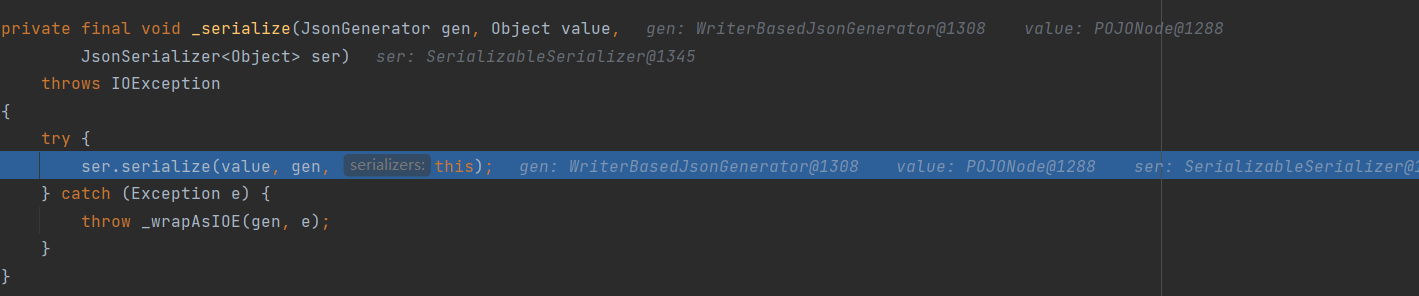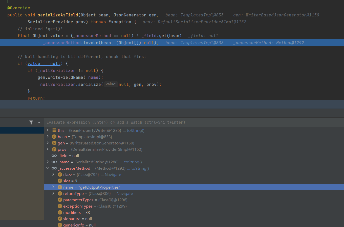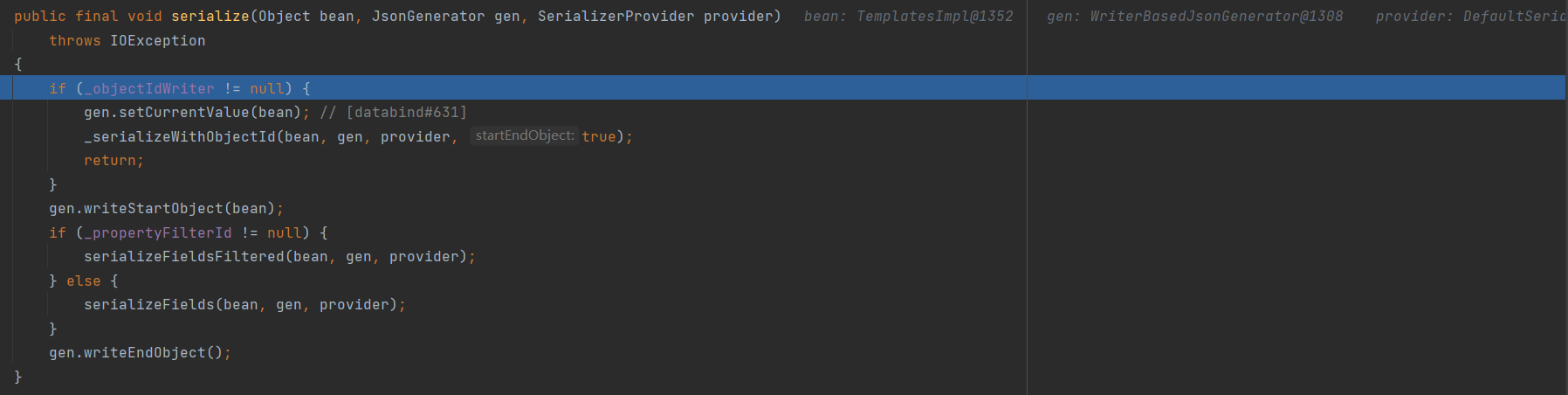 的二次反序列化了。之后就可以走到循环获取getter并反射调用的逻辑了,this._obj